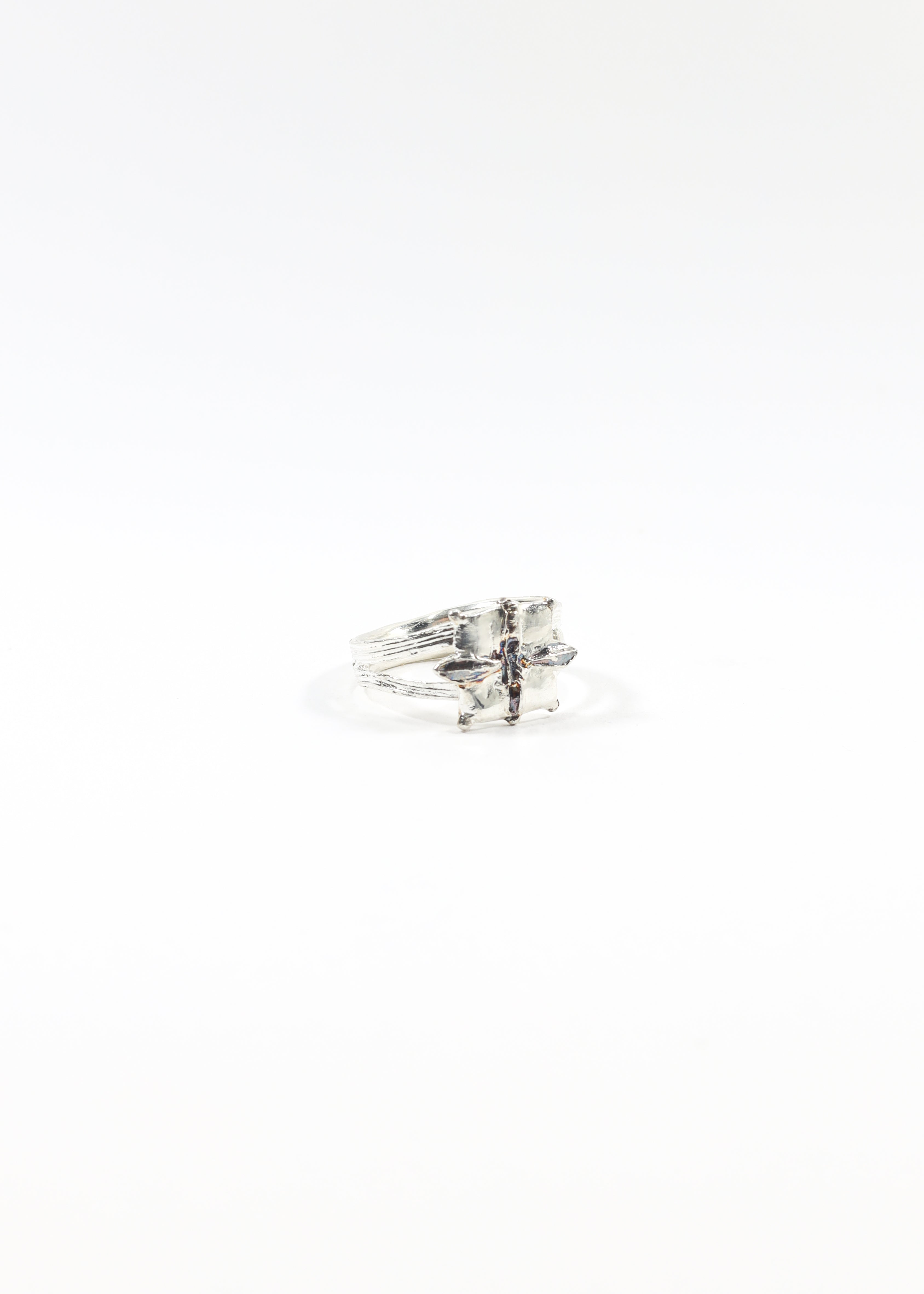 A split blade of grass gives way to a square signet cap, adorned in light whispers of detail. This signet is made as an ode to medieval Kyivian Rus period heirlooms, reworked in this modern mythology with Phoebe's signature use of grasses - painted texture on the face from botanical seed heads. A powerful ring, of old times and new.