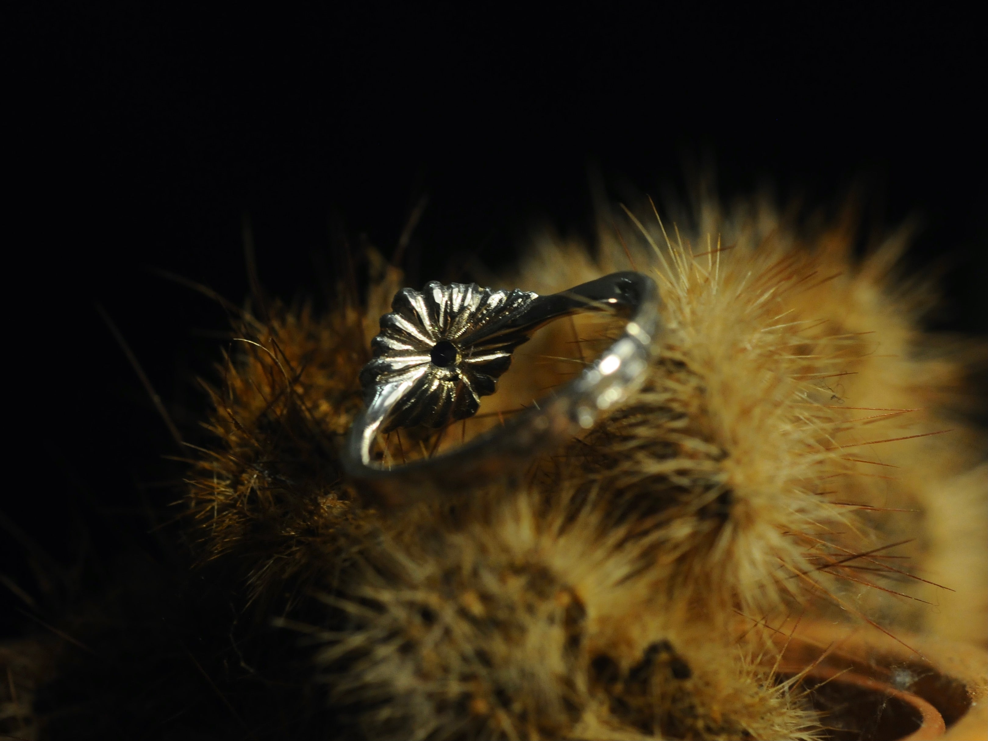 For this bespoke piece, wildflowers and grasses foraged by Oscar from a place special to him and Charlotte were cast into the gold — their delicate textures forming the foundation of the design.