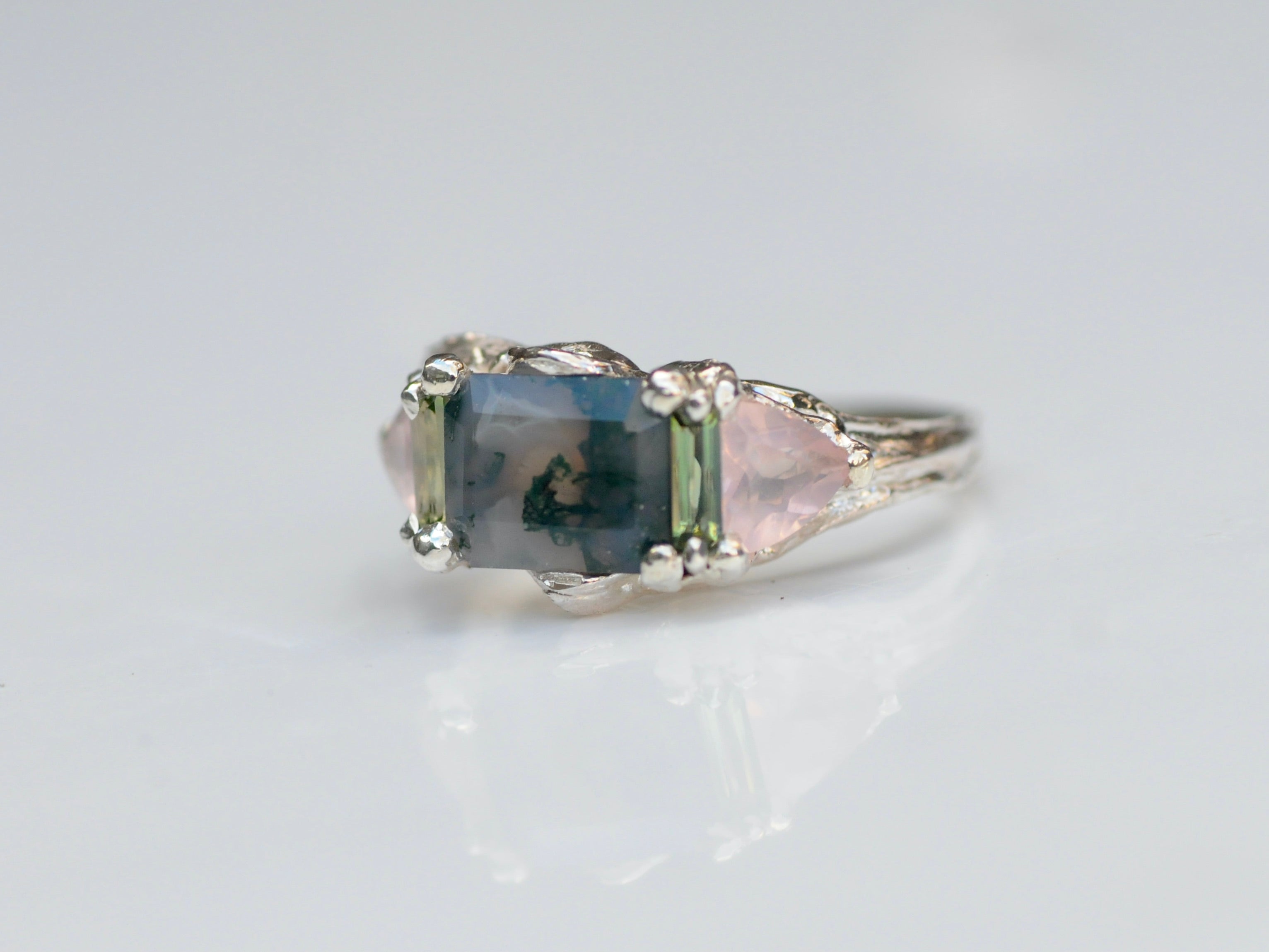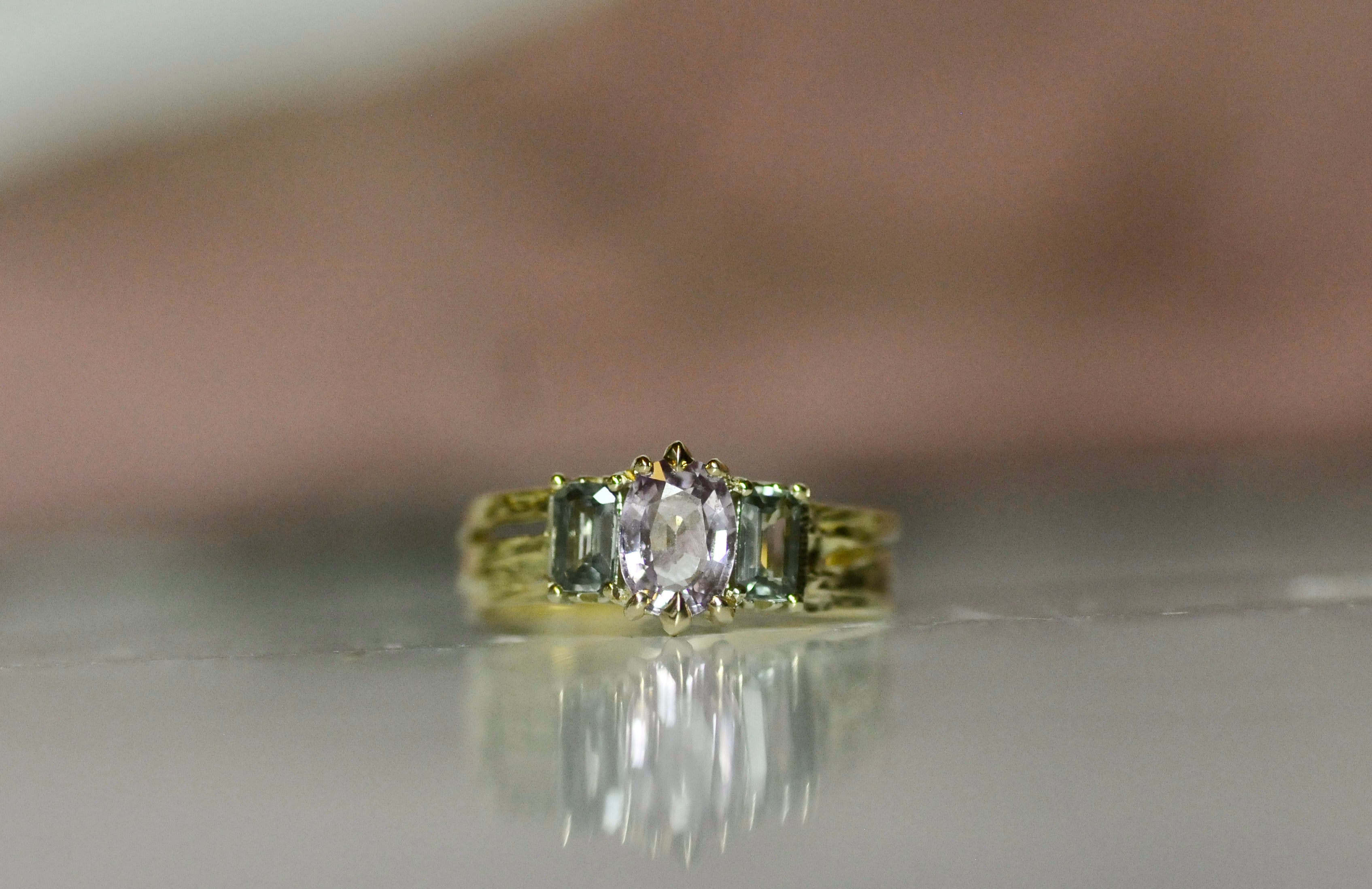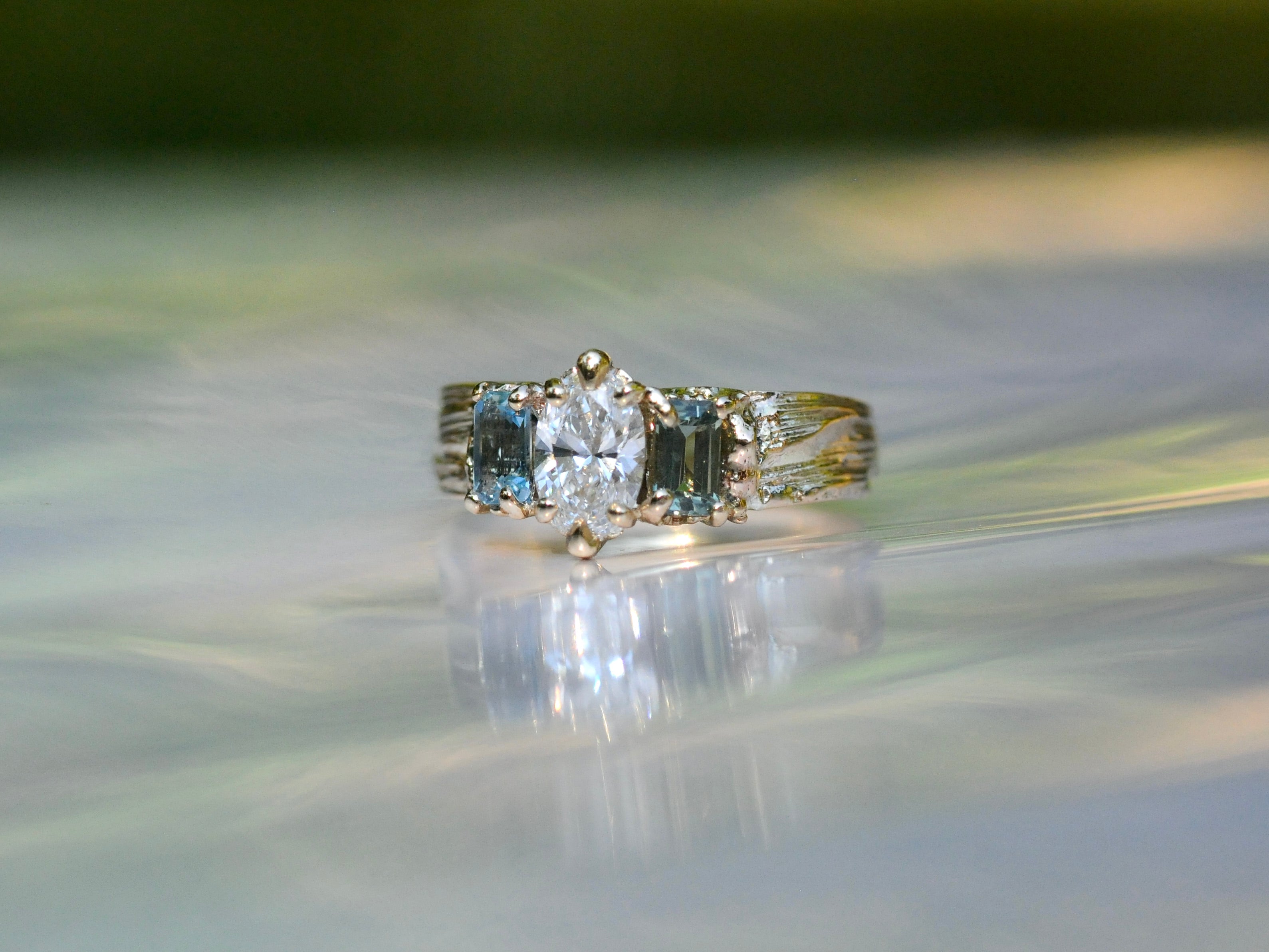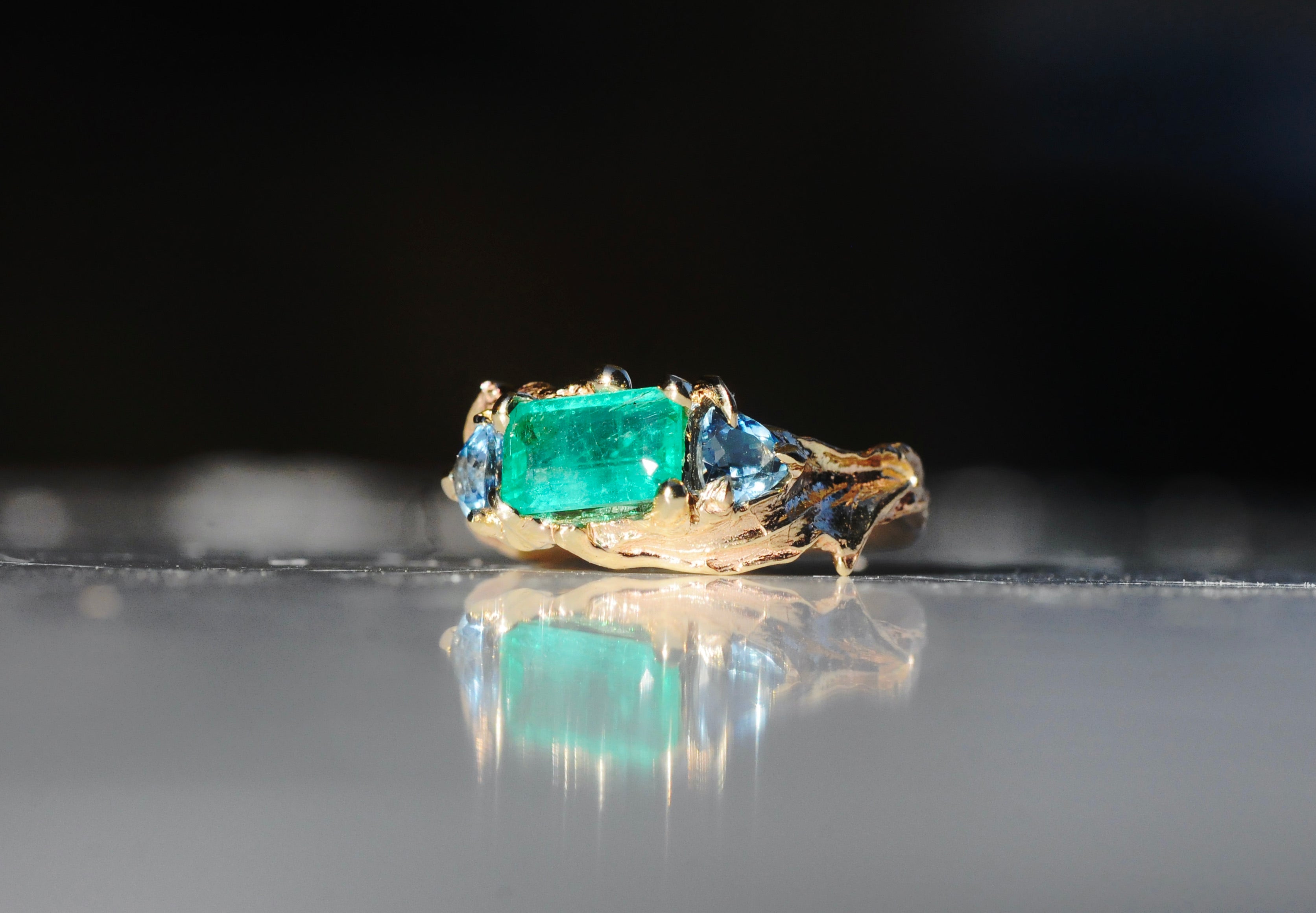 Sky Dipper | Aquamarine & Emerald Thistle Ring